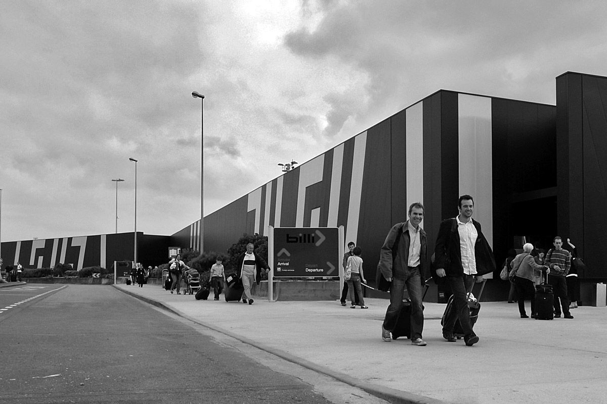 Voilà comment se sont greffés des gens que nous n’avions jamais rencontrés, et que nous n’aurions pas voulu rencontrer de toute façon. Ils ont plaqué une identité visuelle « classique », extrêmement médiocre, avec un discours marketing publicitaire « au ras des pâquerettes », sans aucune réflexion sur le contexte. Des vagues « créatifs » ont cherché à nommer ce nouvel aérogare. Ça a dégénéré de façon effrayante… Le terminal a été rebaptisé « Billi » pour « Bordeaux illico », le tout composé dans un caractère typographique extrêmement moche, fait sur Illustrator en un quart d’heure, avec des terminaisons rondes. Un truc « sympa » dans le jargon marketing. Les architectes ont eu à combattre cela, par exemple le placement intempestif de panneaux sur le bâtiment. Ils ont réussi à contenir toute cette menace de panneaux supplémentaires qui se seraient ajoutés à la façade et au pont de béton reliant les zones de départ de l’aéroport aux parkings. Les architectes ont donc refusé de céder trop de surface à ce projet de signalétique, mais il n’y avait aucun moyen de passer outre ce marché de signalétique, réservé à « l’espace marketing ».
